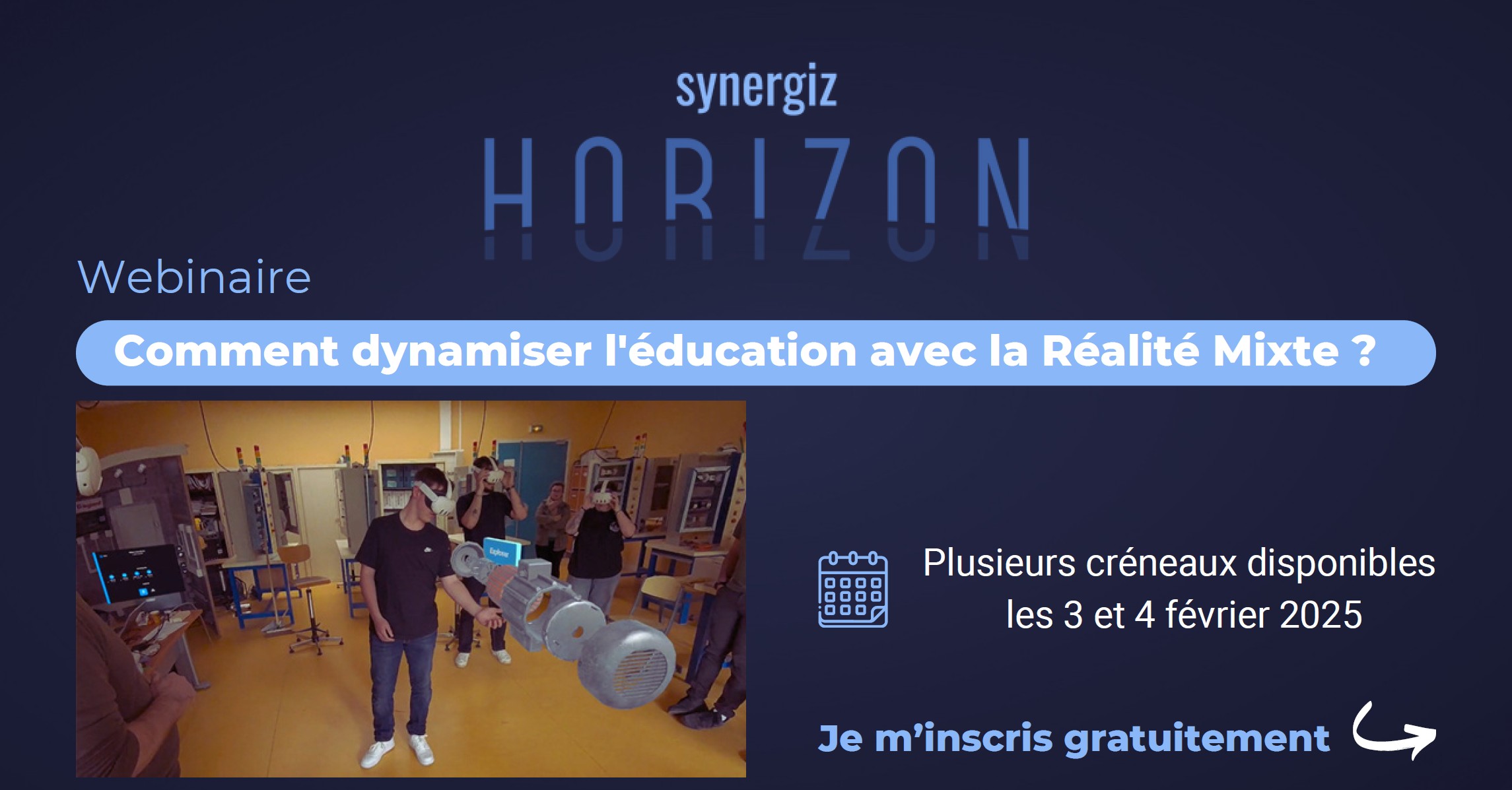 Synergiz Horizon est une toute nouvelle série de webinars qui vous plonge au cœur des usages concrets de la Réalité Mixte. Chaque session est l’occasion de découvrir des témoignages, retours d’expérience et cas d’usage réels issus des secteurs de l’industrie, de la santé, de l’éducation et bien d’autres.